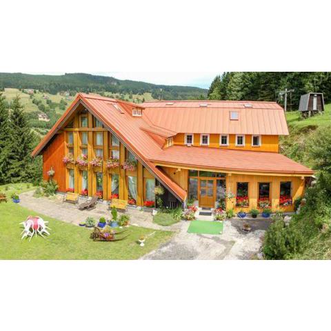 Lyžařská bouda má v Peci pod Sněžkou záhradu, spoločný salónik, terasu a reštauráciu.14 km od autobusovej zastávky Strážné a 40 km od Western City a ponúka predajňu skipasov, ako aj bar.Hotel ponúka výhľad na hory, detské ihrisko a bezplatné Wi-Fi pripojenie na internet vo všetkých priestoroch.