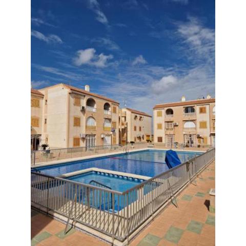 Štúdio s uzavretou záhradou a Wi-Fi sa nachádza v Torrevieji, 1 km od pláže, 1,7 km od pláže Acequion a 2,1 km od pláže Playa del Cura. Ponúka sezónny vonkajší bazén a výhľad do záhrady. Ponúka gril. Apartmán s bezplatným Wi-Fi, TV a kuchyňou s chladničkou a sporákom. Apartmán je vzdialený 12 km od golfového ihriska Las Colinas a nákupného centra Villamartin Plaza. Medzinárodné letisko Región de Murcia leží 55 km od štúdia s uzavretou záhradou so zdieľaným bazénom a Wi-Fi v Torrevieji, 1 km od pláže. ..